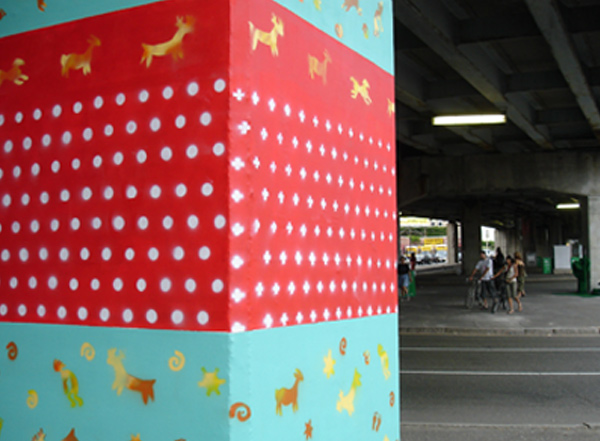 Artists and Community Groups sent proposals and were chosen to create a canvas to be hung by wrapping it around a column.